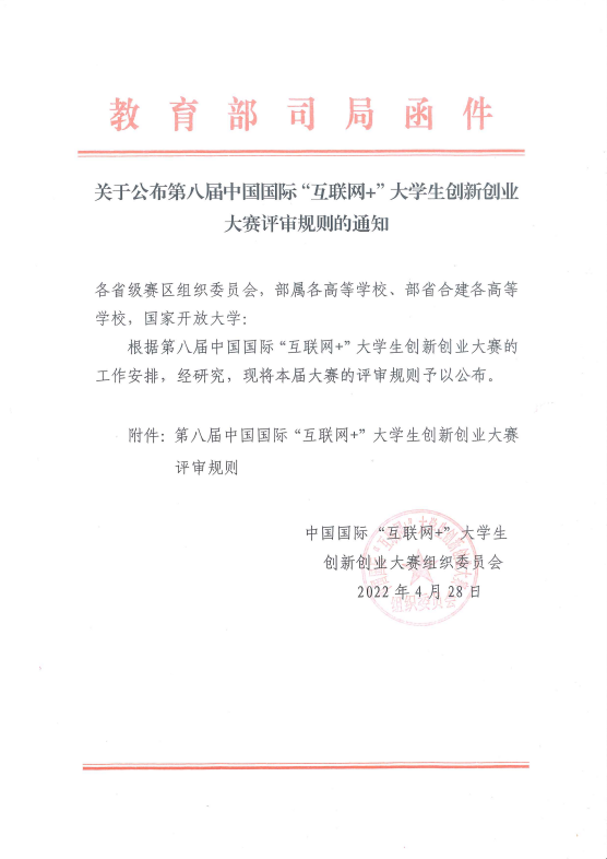 关于公布第八届中国国际“互联网 ”大学生创新创业大赛评审规则的通知