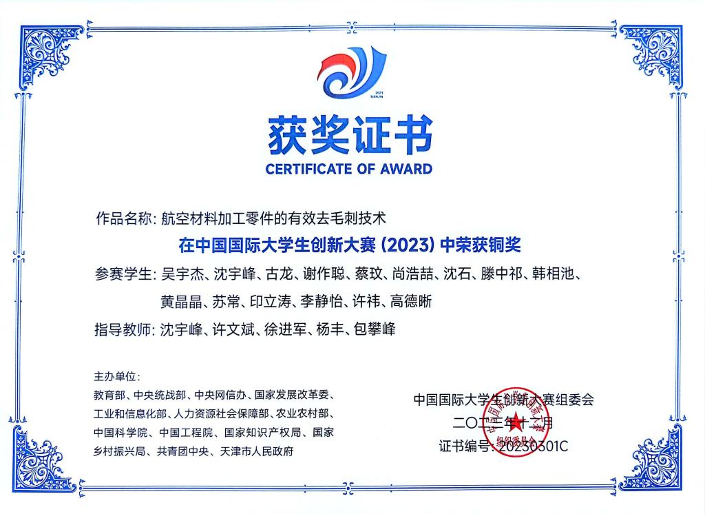 中国国际大学生创新大赛(2023)国赛获奖证书