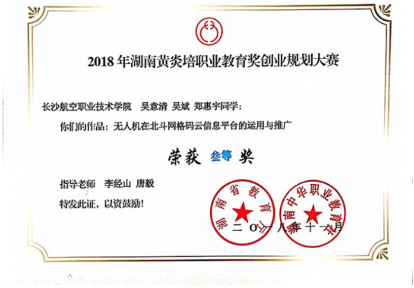 我院吴意清、吴斌、郑惠宇同学的作品“无人机在北斗网络码云信息平台的运用与推广”荣获大赛三等奖