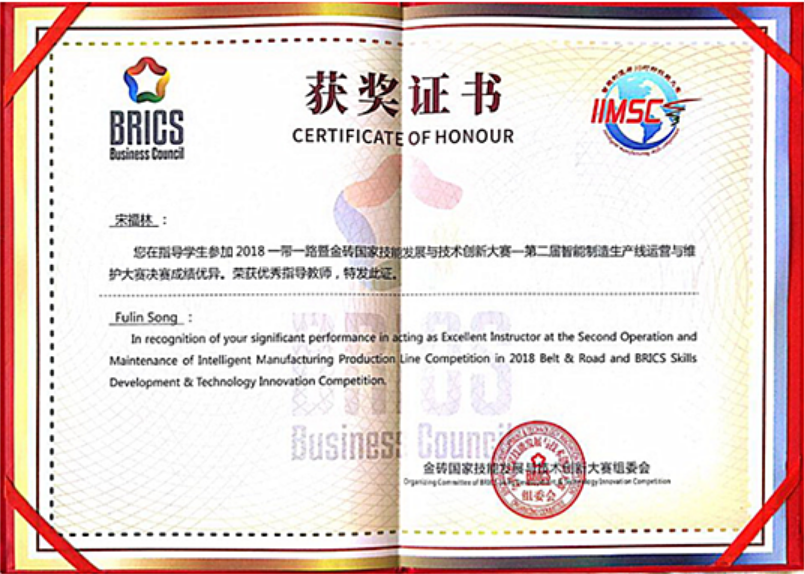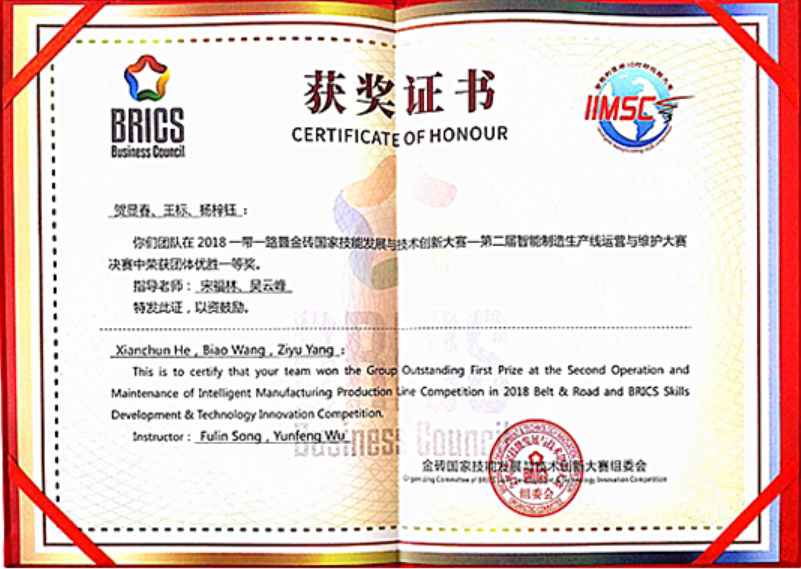 7月8日,历时三天的2018一带一路暨金砖国家技能发展与技术创新大赛暨第二届3D打印与智能制造技能大赛决赛在内蒙古赤峰工业职业技术学院顺利闭幕。我院机电一体化专业学生王标、杨梓钰和数控技术专业学生贺显春组成的参赛队荣获大赛智能制造产线运营与维护赛项一等奖。我院被竞赛组委会授予“最佳组织单位”荣誉称号,参赛队指导老师宋福林被评为“优秀指导老师”。此外,该院3名参赛学生同时收获了武汉华中数控股份有限公司 “技术支持工程师岗位” 录用聘书。