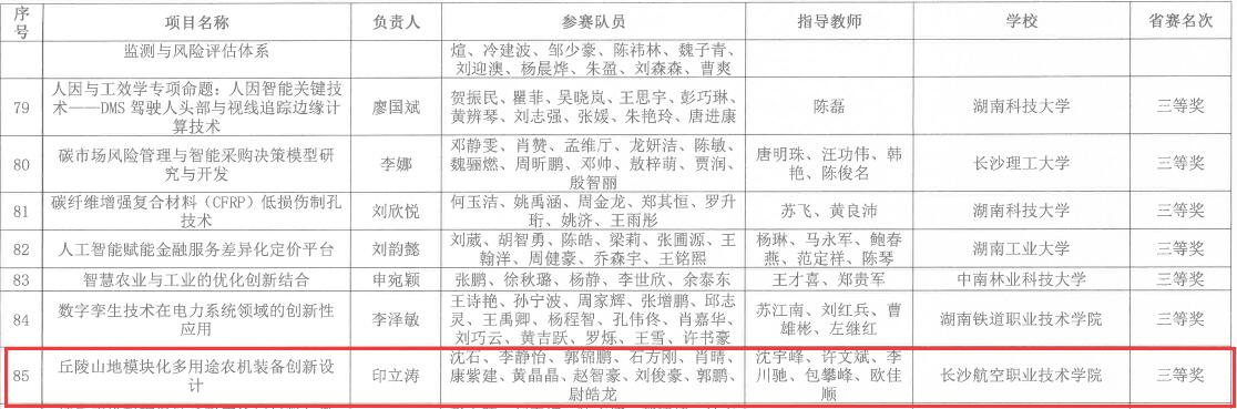 近日,湖南省大学生创新大赛(2024)组委会公布了产业命题赛道获奖名单,我院再获佳绩,荣获二等奖2项,三等奖1项。自此,我院在湖南省大学生创新大赛(2024)中获奖数量增至二等奖4项、三等奖3项,在高职院校中名列前茅。