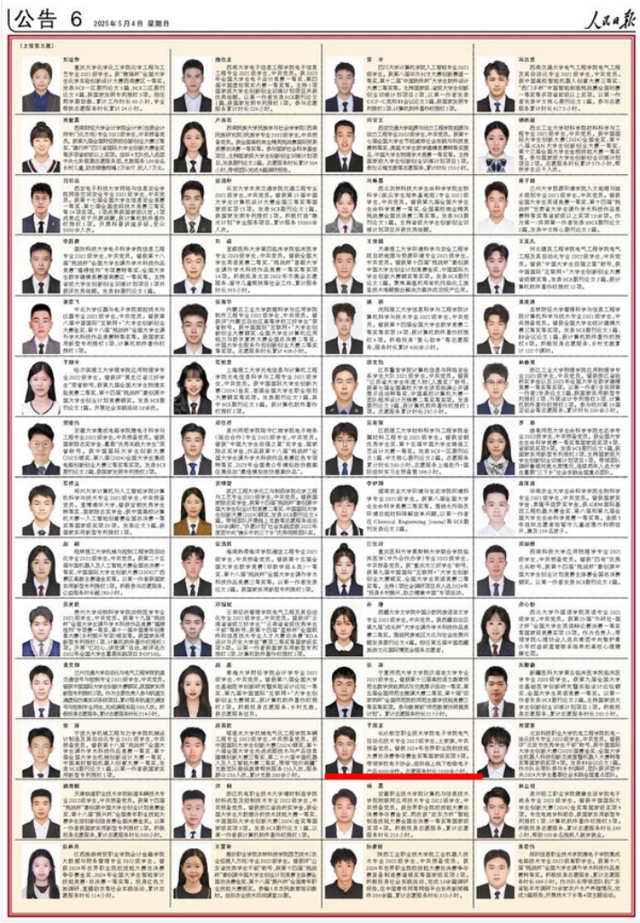 《人民日报》“2023-2024学年度本专科生国家奖学金获奖学生代表名录”