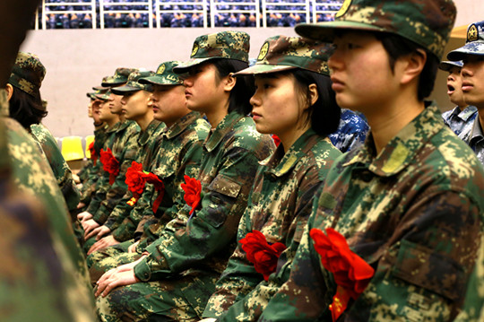 参加欢送会的2016级女士官学员