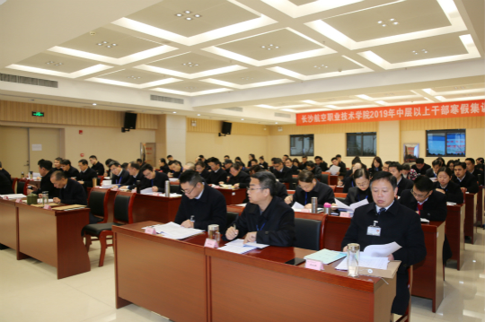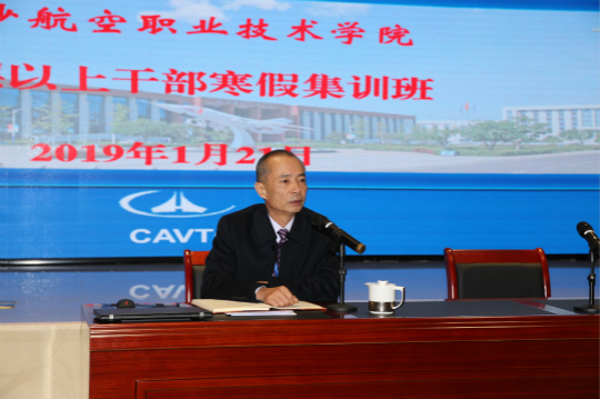 学院院长朱厚望用“2018年是长沙航院历史上最骄人的一年”来充分肯定和赞扬了学院全体教职员工的努力以及取得的成绩。同时,也提醒要从教育厅公布的大数据中清楚认识到目前学院存在的短板和不足。他从“顺利通过两个验收”“入围两校争创一校”“深化两个融合”等十个方面部署了学院2019年的重点工作,并用三个务必对全体干部提出了要求:务必继续保持勤俭办学,艰苦奋斗的优良传统;务必继续保持厉行节约,反对浪费的优良作风;务必继续保持奋发有为,真抓实干的优秀品质。