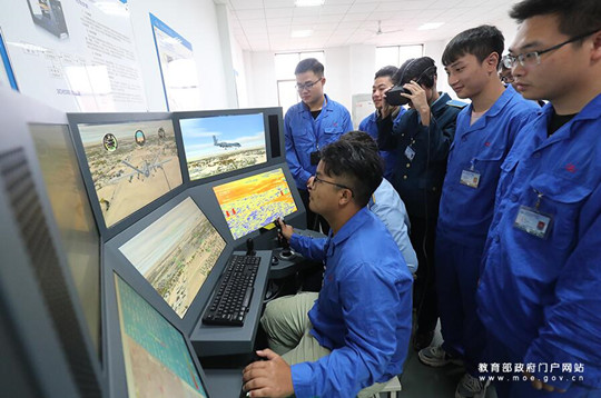 我院无人机应用技术专业的学生操作无人机模拟综合实训系统