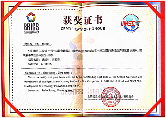 7月8日,历时三天的2018一带一路暨金砖国家技能发展与技术创新大赛暨第二届3D打印与智能制造技能大赛决赛在内蒙古赤峰工业职业技术学院顺利闭幕。我院机电一体化专业学生王标、杨梓钰和数控技术专业学生贺显春组成的参赛队荣获大赛智能制造产线运营与维护赛项一等奖。我院被竞赛组委会授予“最佳组织单位”荣誉称号,参赛队指导老师宋福林被评为“优秀指导老师”。此外,该院3名参赛学生同时收获了武汉华中数控股份有限公司 “技术支持工程师岗位” 录用聘书。