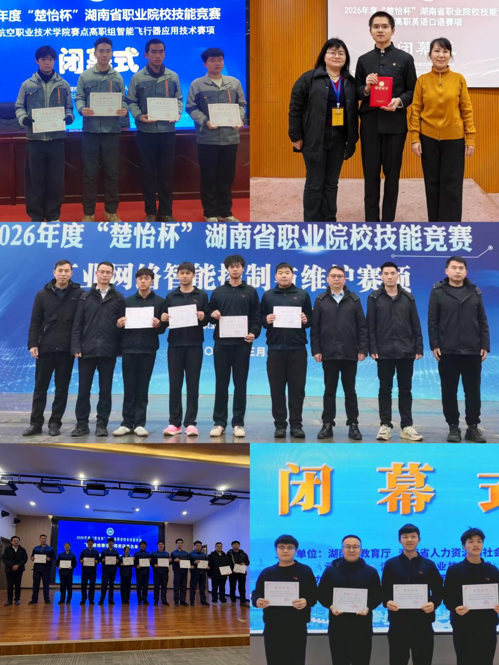 近日,由湖南省教育厅、湖南省人力资源和社会保障厅共同主办的2026年度“楚怡杯”湖南省职业院校技能竞赛圆满落幕。我院积极备赛、全力参赛,在18个赛项中奋勇争先、捷报频传,最终斩获一等奖17个、二等奖6个、三等奖6个,总获奖数达29个,参赛选手全部载誉而归。亮眼成绩充分彰显了我院在高素质技术技能人才培养方面的扎实成效,也生动展现了航院学子精益求精的工匠精神和昂扬向上的青春风采。