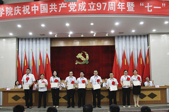 6月28日下午,我院在跳马校区举行庆祝中国共产党成立97周年暨“七一”总结表彰大会,院长朱厚望、党委书记陈勇出席大会,并对上一学年工作做总结概括,号召全体党员向新的目标继续迈进。我院党委委员,来自学院各党总支、直属党支部的党员代表近300人参加了会议。会议由党委副书记蔡海鹏主持。