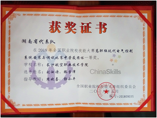 5月28日至30日,2018全国职业院校技能大赛高职组现代电气控制系统安装与调试赛项在常州机电职业技术学院圆满落幕。来自全国30个省、市、自治区的95支代表队参加本项竞赛。经过激烈的角逐,我院电子学院学生刘汝诗、滕召泽在周欢喜、李广兵、彭小平等老师的指导下以优异的成绩,荣获现代电气控制系统安装与调试赛项一等奖,也实现了湖南省该项目在全国职业院校技能大赛一等奖零突破。
