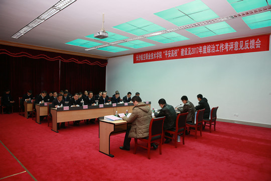 12月23日上午,由湖南科技学院保卫处处长吴春江、湖南大学保卫处安全科长黄发林、湖南农业大学治安科长张志斌、湖南省委教育工委维稳办主任科员张轶四人组成的省教育厅厅委直属单位综治(平安建设)考评专家组一行来到我院,考评学院“平安高校”建设及2017年度综治工作情况。