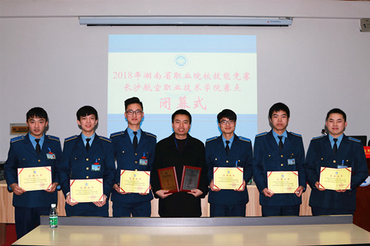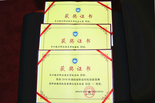 会务组组长彭圣文宣读比赛结果。来自全省6个高职院校的33名选手经过两个模块操作技能比赛环节的激烈角逐,最终,长沙航空职院黎琼、苏响、佘文智3人摘得 数控机床装调与技术改造(高职组)赛项 第一名、一等奖;长沙航空职院贺显春、李拯帆、王东与湖南化工职业技术学院3名选手获该赛项第二名、二等奖;湖南化工职业技术学院、湖南工业职业技术学院和湖南汽车工程职业学院获该赛项第三名、三等奖。出席闭幕式的领导为获奖选手颁奖。(新闻中心 文/邹宇婷 摄影/刘嫄)