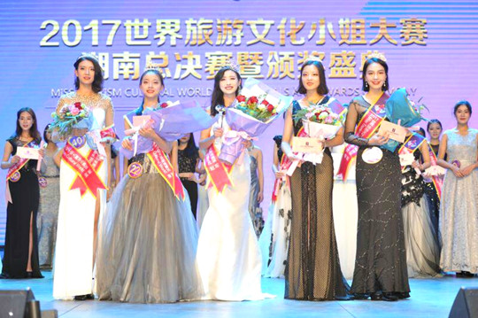 11月19日下午,由世界文化旅游组织联合会、世界旅游文化小姐国际赛事机构主办,龙尊国际传媒承办的“2017世界旅游文化小姐”湖南赛区总决赛在长沙琴岛大剧院举行。35名脱颖而出晋级湖南总决赛的佳丽经过善德、才艺、晚礼服秀等五大环节的角逐,最终,我院空乘1604班的选手凌蛟斩获冠军、空乘1702班朱墨馨同学荣获季军。