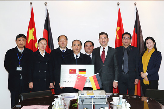 最后,费德勒博士和朱厚望院长代表双方签订了合作备忘录并举行了授牌仪式。