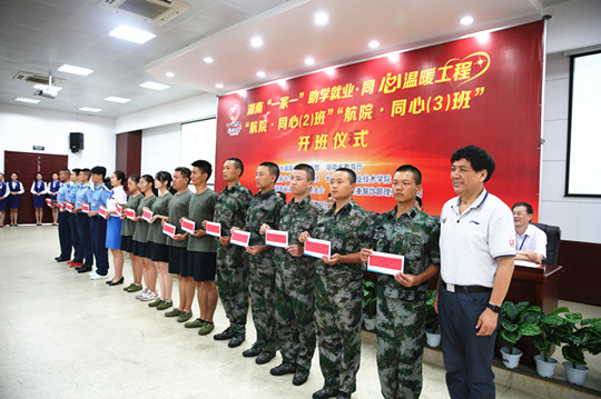 9月23日,湖南“一家一”助学就业·同心温暖工程“航院·同心(2)班”“航院·同心(3)班”授牌仪式在我院举行。十一届湖南省政协副主席、湖南中华职业教育社主任刘晓、湖南省教育厅副巡视员郭建国、湖南省温暖工程基金会秘书长、湖南中华职业教育社秘书长杨里平、中共湖南省委统战部党派处副处长李虎、我院院长朱厚望、党委书记陈勇等领导出席活动,湖南省教育厅职成处副处长周韶峰主持仪式。