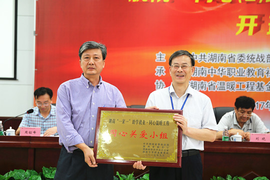 湖南中华职业教育社秘书长、湖南省温暖工程基金会秘书长杨里平为我院同心关爱小组授牌