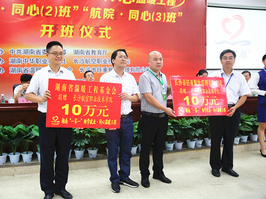 湖南省温暖工程基金会、长沙市任重餐饮管理有限公司分别向我学院捐赠10万元