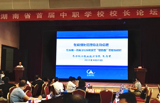 8月21日,湖南省首届中职学校校长论坛在长沙开幕。我院院长朱厚望应邀在论坛会上作了《在精细化管理中走向卓越——怎样做一名善于给教职员工“打鸡血”的职教校长》的主题演讲,并参加了首场论坛博弈,获得与会代表的一致好评。