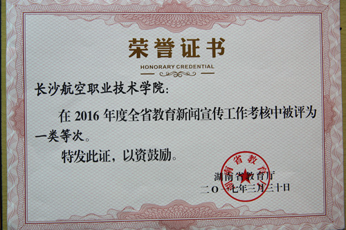 近日,湖南省教育厅下发《关于2016年度全省教育新闻宣传工作考核情况的通报》(湘教通〔2017〕118号),我院被评定为2016年度全省教育新闻宣传工作综合考核“一类等次”,并在10所高职高专院校中名列第一,我院已经连续两年获得此项荣誉。在单项考核中,我院政治部副主任、新闻中心主任张少利荣获“2016年度先进个人”称号。