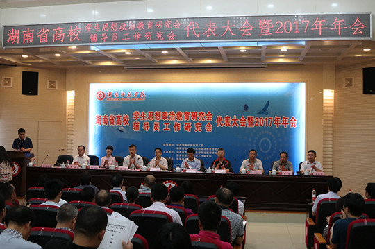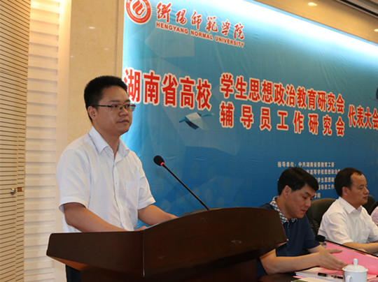 5月19日,湖南省高校学生思想政治教育研究会、辅导员工作研究会代表大会暨2017年年会在衡阳师范学院召开,湖南省教育厅党组成员、省委教育工委委员陈飞跃出席会议并讲话,衡阳师范学院党委书记刘沛林致欢迎辞,研究会会长、湖南大学党委副书记陈伟作研究会2016年工作总结。会上,我院被评为2016年湖南省高校辅导员工作研究与实践先进单位,我院党委副书记蔡海鹏作为先进单位获奖代表发言,介绍我院大学生思想政治教育和辅导员工作典型经验。来自全省各高校从事思政教育工作的领导与老师150余人参加了会议。