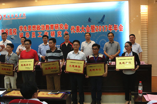 我院被评为湖南省高校辅导员工作研究与实践先进单位,图右三为蔡海鹏副书记领奖。