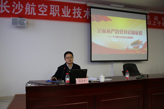 蔡海鹏副书记对《关于新形势下党内政治生活的若干准则》、 《全面从严治党开启新征程——十八届六中全会公报解读》、《中国共产党党内监督条例》、《中国共产党问责条例》作了主题宣讲,重点学习解读了党的十八届六中全会等相关会议、文件精神,使全体干部能够准确把握当前形式,增强政治敏锐性,带头学习,带头执行,以身作则,引领示范,履行全面治党责任。