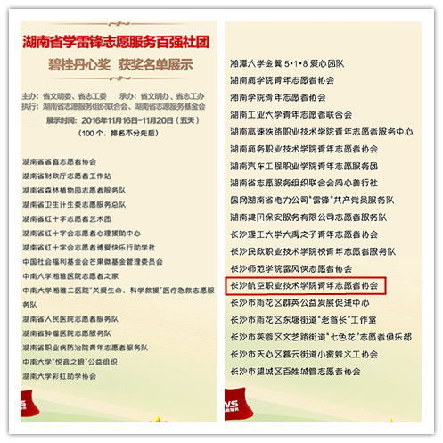 湖南省学雷锋志愿服务百强社团名单