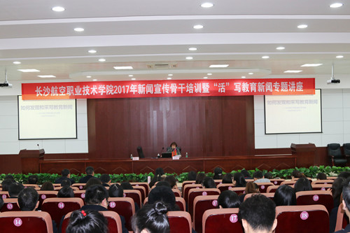 为扎实贯彻落实全国高校思想政治工作会议精神,更好发挥文化育人和舆论引导的重要作用,3月17日下午,我院在跳马校区第三学术报告厅举办了2017年新闻宣传骨干培训,中国教育报刊社驻湖南记者站副站长、高级记者李伦娥应邀来我院作“活”写教育新闻专题讲座。新闻宣传中心干事、各二级单位新闻宣传工作负责人、兼职通讯员、网络评论员、全体辅导员、大学生记者团成员等近200人参加,培训由新闻宣传中心主任张少利主持。