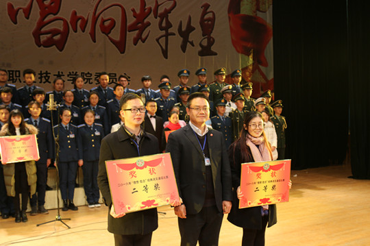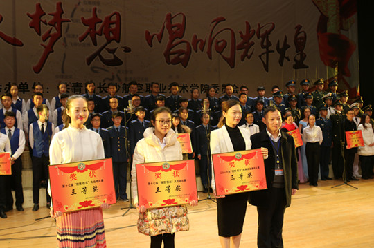 比赛伴随着我院自创歌曲《托起战鹰的翅膀》悠扬的歌声结束。经过激烈角逐,最终基础学院合唱团及诵读代表队凭借歌曲《当你老了》、《掀起你的盖头来》和诵读《中国人,不跪的人》分别荣获此次合唱和朗诵比赛的两个“一等奖”; 士官学院、电子学院获合唱比赛二等奖,士官学院、机电学院获诵读比赛二等奖;机制学院、管理学院、机电学院获合唱比赛三等奖,电子学院、机制学院、管理学院获诵读比赛三等奖。 最后,由关副院长、蔡副书记和张部长分别为获得一、二、三等奖的各二级学院代表颁奖,此次比赛圆满落幕!