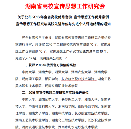 2016年湖南省高校优秀官方微信