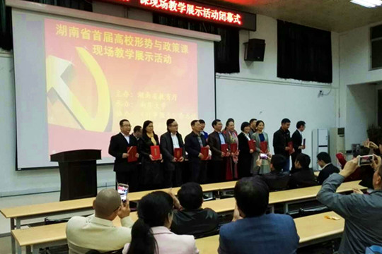 10月29日,由湖南省教育厅主办的“全省首届高校‘形势与政策’课现场教学展示活动”决赛在南华大学举行。此次大赛共有来自36所高校的思政课教师参赛,我院思想政治理论课教学部由教研室主任何国清老师带队,王迎春老师参赛并荣获大赛二等奖。