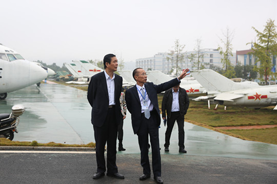 在朱院长陪同下,苏校长一行参观了我院航空文化广场、飞机展示坪、功勋战机陈列馆,以及航空维修实训中心、数控实训中心、机加实训中心、航空服务实训中心等实训教学现场。朱院长向来访嘉宾一一介绍了各型飞机、发动机及其他教学装备情况,介绍了实训教学现场管理的经验,重点介绍了与产业深度对接、校企合作办学的经验与成果。我院先进的教学装备、精细化的现场管理给参观者留下了深刻的印象。