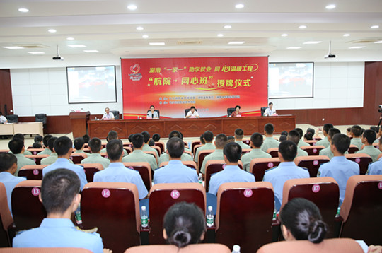 “一家一”助学就业,心连心精准扶贫。9月22日,湖南“一家一”助学就业·同心温暖工程“航院·同心班”授牌仪式在我院跳马校区举行。省政协副主席、湖南中华职业教育社主任刘晓为学院授牌。省委统战部巡视员刘权主持仪式。省教育厅副厅长应若平作总结讲话。我院院长朱厚望致辞,党委书记陈勇出席。