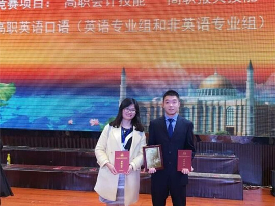 士官学院刘思洋同学(右)获得“高职英语口语(非英语专业组)赛项”一等奖