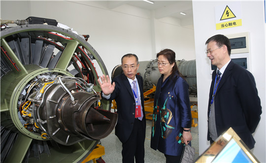省教育厅副厅长应若平(中)参观我院飞机展示坪