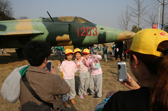 近距离触摸到战斗机,让他们异常兴奋