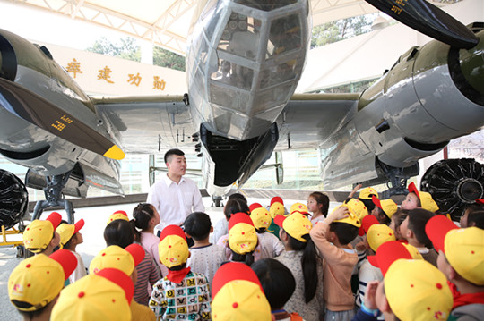 3月2日下午,长沙砂子塘泰禹小学57名小朋友来到我院参观。学院大学生校园文化讲解团队员志愿为小朋友们讲解航空科普知识。在飞机展示坪小朋友们认识了20多架各型飞机,学习了导弹、高炮知识,还和英雄战斗机机杜—2轰炸机亲密接触。在航空模拟舱,小朋友们体验如何当一个合格的小乘客,并认真聆听航空服务专业的哥哥姐姐们讲授飞机安全急救知识。在三月的春光里,小朋友们接受了一场快乐的爱国主义、国防和航空科普知识教育。