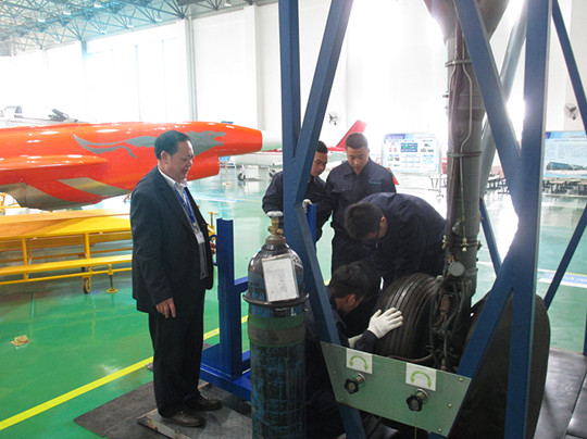 近日,由机电学院大师工作室教授级高工彭朝荣主持设计的创新项目飞机起落架机轮拆装工装设备正式投入教学使用,受到了师生们的一致好评和欢迎。