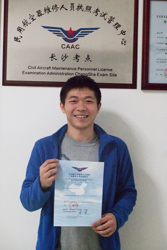 “我终于通过了最后的口试,获得了梦寐以求的证书。13个月的艰苦学习,15个模块的考试,太不容易了。”作为长沙航院147全程班成功拿证的佼佼者,陈哲人笑的极其灿烂。他是长沙航院飞行器维修专业(原为飞机维修专业)的学生,毕业后就参加了长沙航院机务培训中心的147全程班培训。多少个周末泡在实训室练习实操,多少个深夜还在苦学民航知识,不记得多少次向老师请教,和师傅探讨,付出多少汗水,就收获多少希望。他已经成功被四川航空公司录取,走上了机务的岗位。