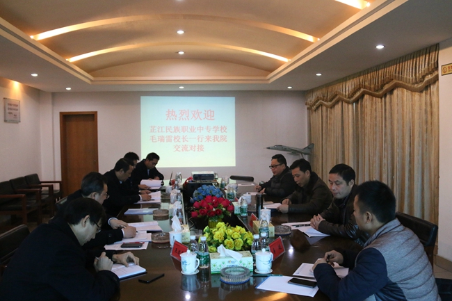12月23日上午,湖南芷江民族职业中专毛瑞雷校长一行来我院就结对帮扶工作进行交流座谈,我院院长朱厚望接待了毛瑞雷校长一行,双方在四楼会议室进行了友好交流。我院副院长关云飞、院长助理兼教务处处长朱国军以及部分二级学院院长和相关专业老师参与会议。