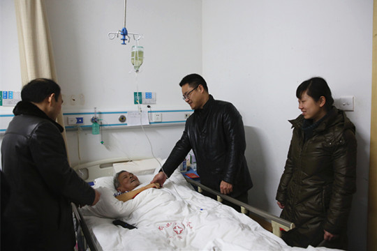 本次慰问主要看望了张学政、陈宏珊、杨玉德、杨甲山等离休老干部及欧阳镜清老校长。在老人家里,蔡副书记拉着老人们的手,嘘寒问暖,仔细询问生活情况、存在的困难,嘱咐一定要好好保重身体。对生病住院的离休老干部,蔡书记详细询问了他们的病情,安慰他们安心养病,并祝福他们早日康复。蔡书记向老干部介绍了一年来学院发展情况和取得的喜人成绩,并邀请老干部们常回学校看看。听到学校现在发展得这么好,老人们都很激动,一方面感谢学院领导的关心,另一方面也祝福学院越办越好。