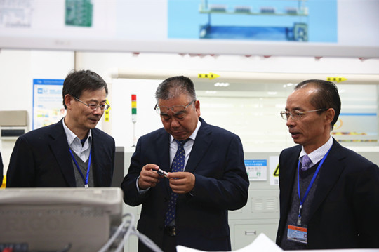 在朱院长、陈书记陪同下,徐厂长、徐书记一行参观了我院校园,重点参观了实习实训教学场所。参观过程中,朱院长介绍了我院依托行业企业办学、校企合作共育人才、实训室建设管理等方面典型经验做法,特别是依托航空职业教育与技术协同创新中心战略平台,坚定不移走军队和航空特色发展之路,坚持校企合作、工学结合、协同创新发展以来所取得的一系列办学成果。朱院长还就实训文化建设、数字化实训工卡、师生自行研制教学工具等方面作了介绍。