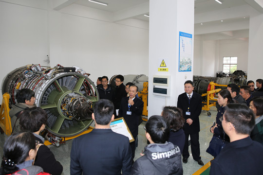 朱院长陪同杨院长一行参观了我院飞机展示坪、杜-2和乌米格15飞机陈列馆、航空维修实训中心、数控、机加实训中心、航空服务实训中心等场所,参观途中,朱院长向来访嘉宾一一介绍了实训室与教学设备的功能,重点介绍了实训文化和教学现场管理具体做法,他认为实训教学现场管理要充分发挥师生的主动性和集体智慧,持之以恒,持续改进,不断创新,才能做到引领企业生产现场管理。对于来访嘉宾的提问,朱院长一一做了耐心解答。