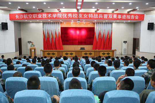 7月9日下午,我院优秀校友、南京军区某特种作战旅女子特战班班长曹双果应邀来院作励志报告,政治部、学生处、团委、士官学院领导老师,及各二级学院学生代表300余人共同聆听了她的精彩报告。