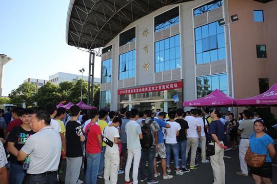7月27日,全省定向培养直招士官集中面试在我院举行,面试考生正排队入场。