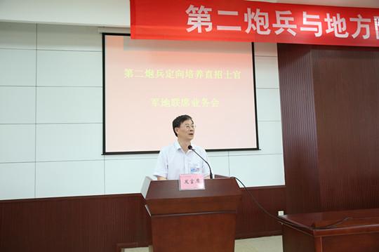 二炮定向培养直招士官军地联席会现场,朱厚望院长介绍我院士官培养情况。