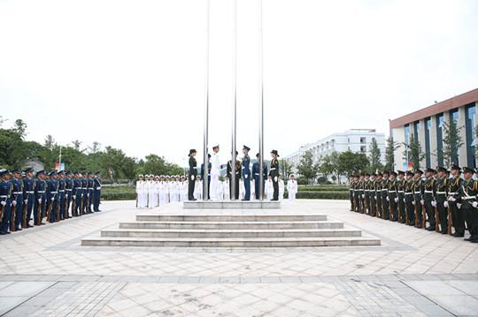 我院二炮、空军、海军三军仪仗队升旗仪式。