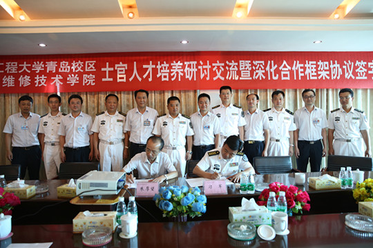 6月23日至24日,海军航空工程学院青岛校区刁军院长一行7人来我院调研,了解我院专业改革、课程建设、师资配备及教学保障等方面情况。双方举行了士官人才培养研讨交流暨深化合作框架协议签字仪式,共同研讨海军士官人才培养中军事训练、专业建设、课程开发、创新实践等方面内容。刁军院长、我院朱厚望院长分别代表双方签订了深化合作协议书,在士官人才培养、教学资源共享、师资队伍建设、科研项目开发等领域进行深度合作,希望经过双方共同努力,实现资源共享、优势互补、互惠互利、共同发展的目的。
