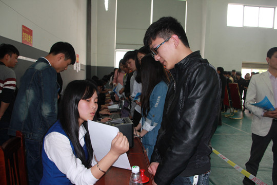 单招确认现场火爆,同学们自觉排起了长龙