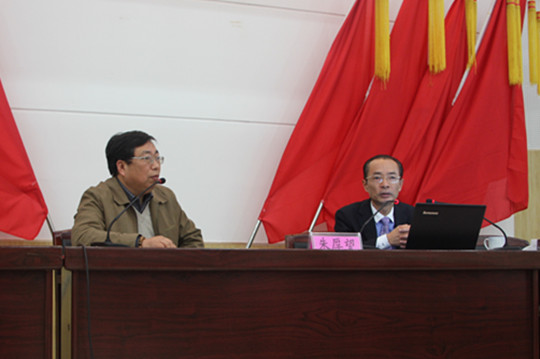 朱院长(右)作报告,杨院长(左)主持报告会