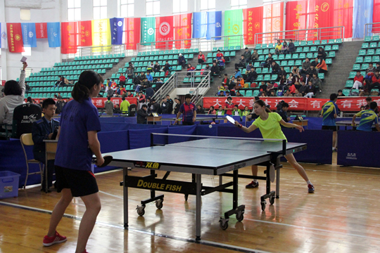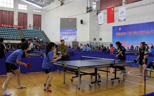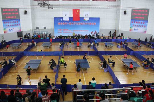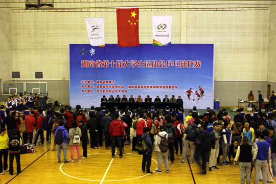 11月17日下午6点,湖南省第十届大学生运动会乒乓球比赛在我院闭幕。图为闭幕式现场。